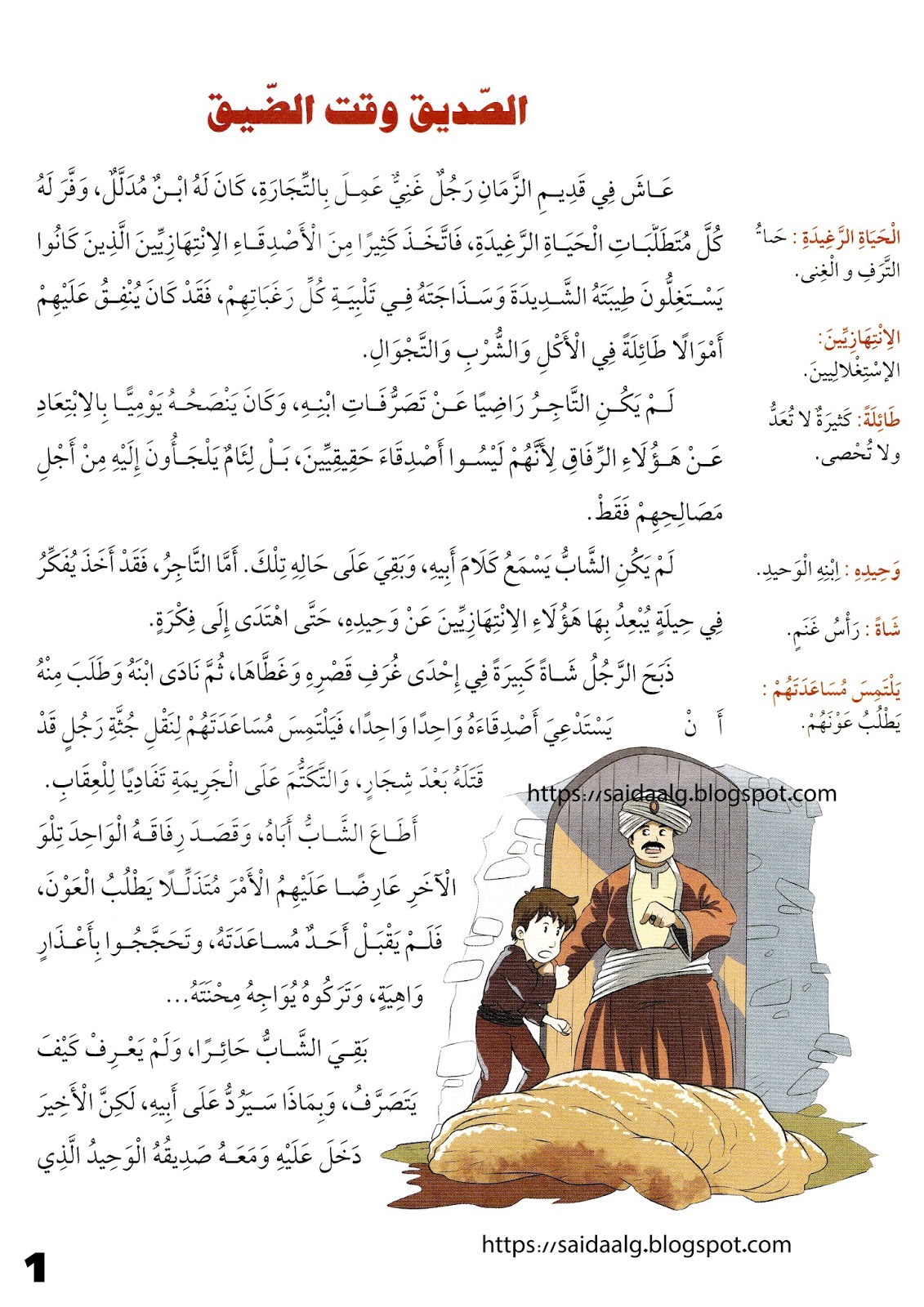 قصة الصديق وقت الضيق إقرأ لإبنك وعلمه قيم جميلة و أسئلة عليها