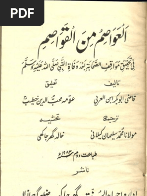 Download Book العواصم من القواصم أبو بكر محمد بن عبد الله الأشبيلي الملقب بالقاضي ابن العربي ط عباد الرحمن Pdf Noor Book For Download Ebooks