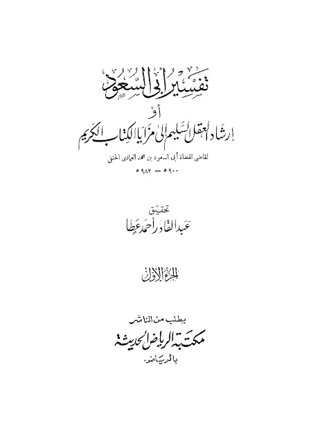 تفسير أبي السعود طبعة مكتبة الرياض الحديثة Pdf مدونة نور الكتاب والسنة
